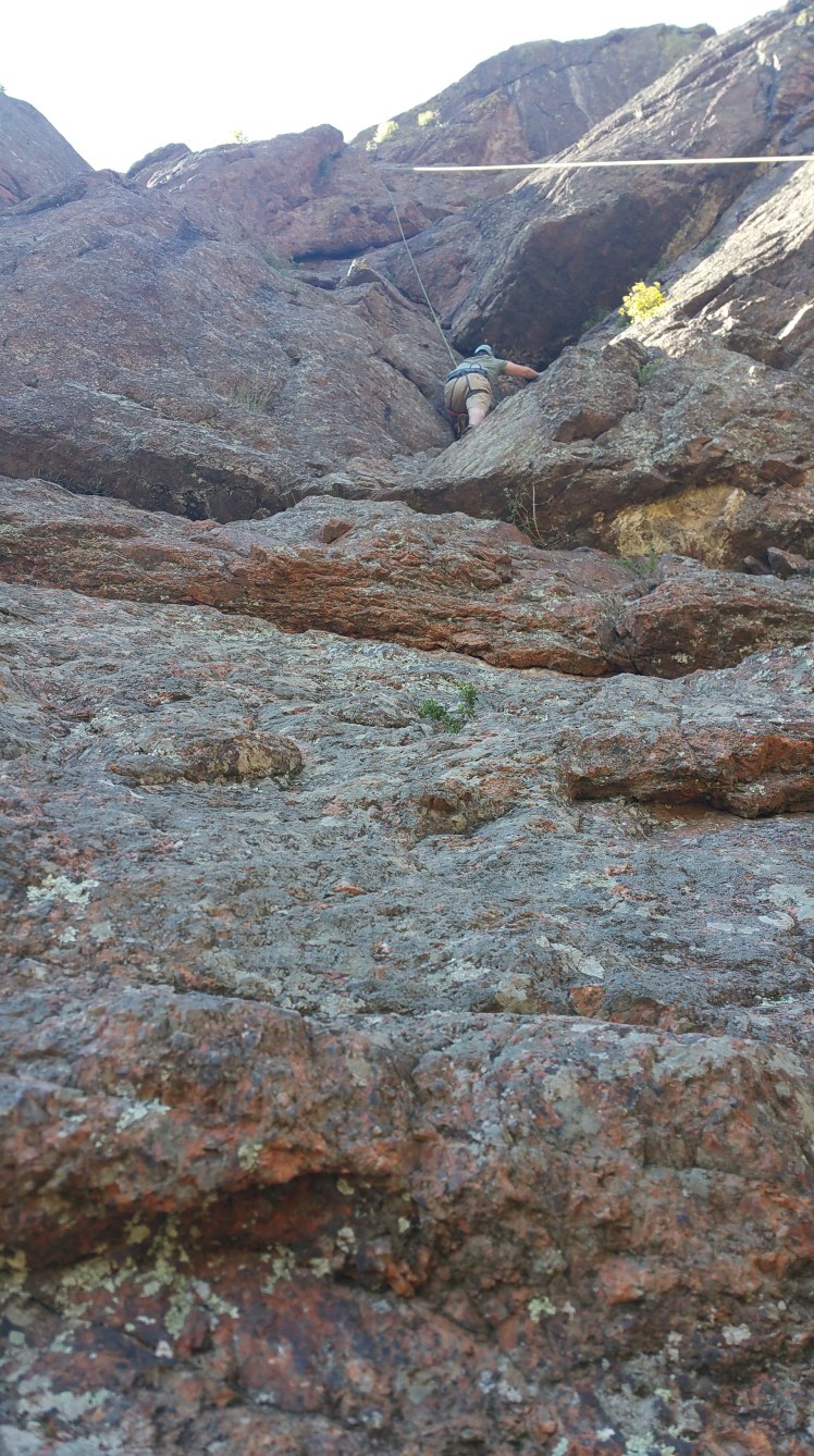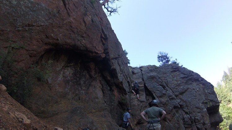 We woke up early (and sore!) the next day to meet our guide in North Cheyenne Caรฑon for some rock climbing! North Cheyenne Caรฑon was easily one of our favorite places to hang out in The Springs, so don’t miss it even if you’re not interested in hiking or rock climbing. It’s very easy to drive and has dozens of picturesque pull over spots to park and take in the Colorado mountains. We spent most our evenings here…we’d pick up some dinner to-go and just chill at one of the many look out spots.